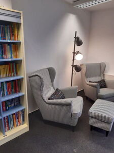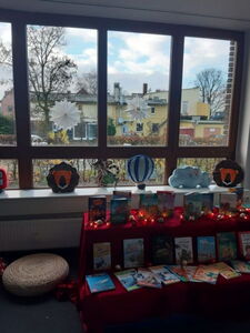 Die Lesewolke ist die Schülerbücherei unserer Schule, in der die Kinder eine Vielzahl spannender Bücher ausleihen können. Besonders in den Pausen ist die Lesewolke ein beliebter Ort, denn hier helfen die Viertklässler tatkräftig bei der Ausleihe und sorgen dafür, dass alles reibungslos läuft. Auch nachmittags wird es lebendig: Ein spezieller Lesekurs im Ganztag bietet den Kindern die Möglichkeit, sich intensiv mit Büchern zu beschäftigen und ihre Leselust zu fördern. So ist die Lesewolke nicht nur ein Ort zum Lesen, sondern auch ein Treffpunkt für alle, die Bücher lieben.